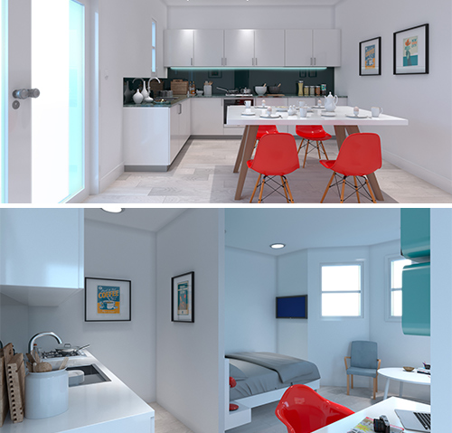 In October 2016 planning was submitted for fourteen individual studio apartments and three 4 bedroom cluster flats. Construction is split between new build and conversion and is now underway with an anticipated completion of August 2017.